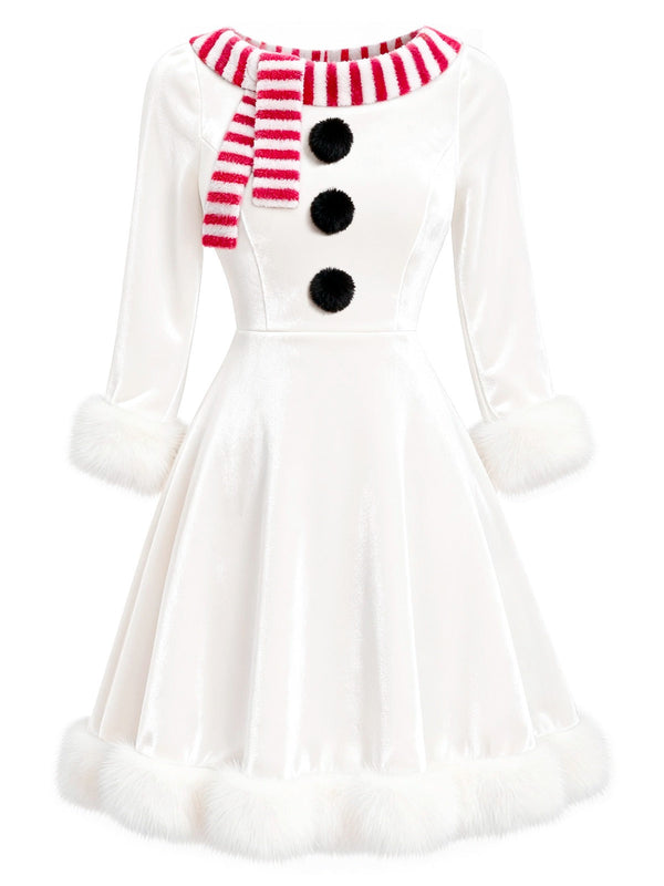 [Prévente] Robe de Noël en velours blanche bonhomme de neige années 19 – Retro Stage-France
