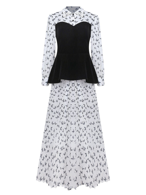 Robe mi-longue blanche à corset en velours plissé et perles papillon d – Retro Stage-France