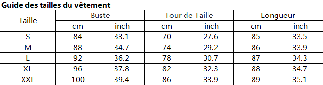 Remarque : Les mesures des tableaux de vêtements peuvent varier en fonction des produits ou des fournisseurs.