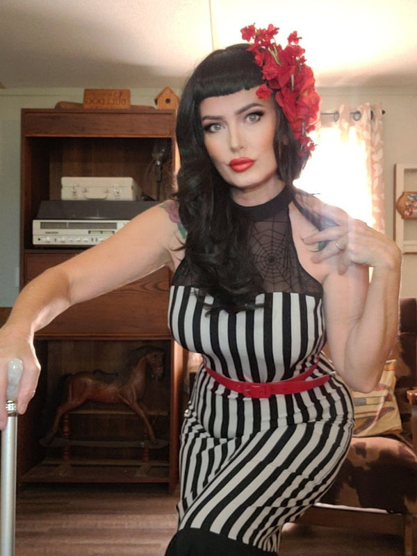 Robe queue de poisson rayures en maille toile d'araignée noire années – Retro Stage-France
