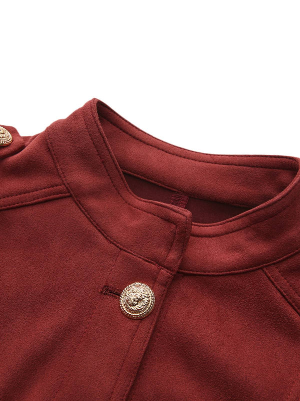Veste courte en daim marron col montant des années 1980 – Retro Stage-France