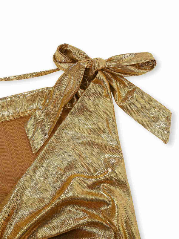 Robe col bénitier et nœud papillon à lacets métallisé doré des années 1930