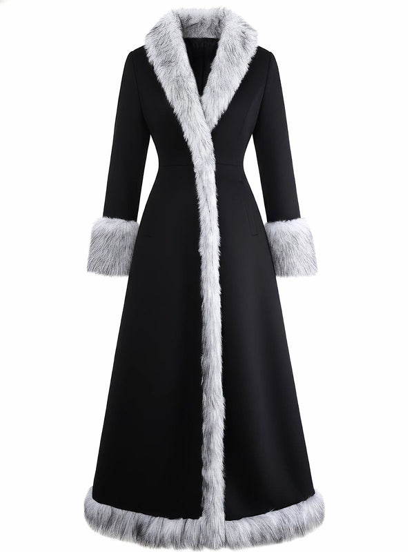 Manteau long noire à bordure en fausse fourrure années 1930 – Retro Stage-France