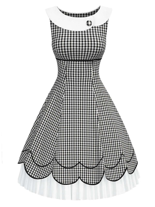 [Pré-vente] Robe à volants en vichy noir et blanc des années 1950 – Retro Stage-France