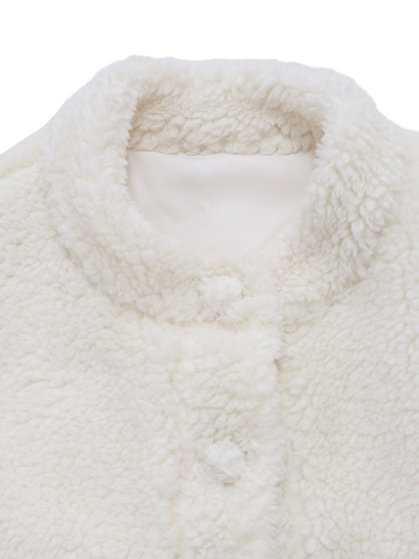 [Prévente] Veste blanche à col montant en fausse laine années 60