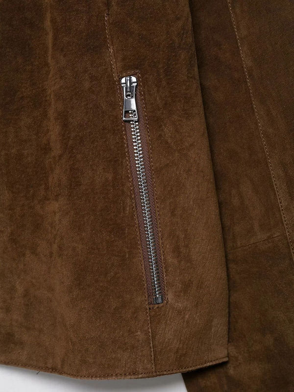Veste courte en daim marron avec fermeture zippée années 1980 – Retro Stage-France