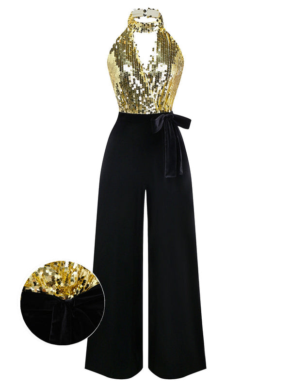 [Pré-vente] Combinaison dos nu en velours pailleté doré des années 193 – Retro Stage-France
