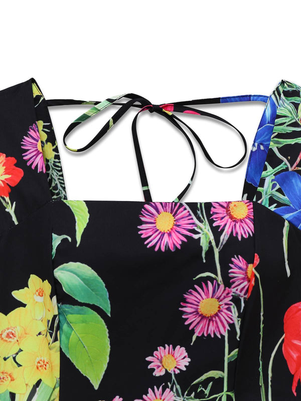 Robe longue fleurie noire à col carré des années 1930 – Retro Stage-France