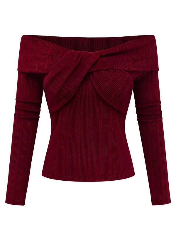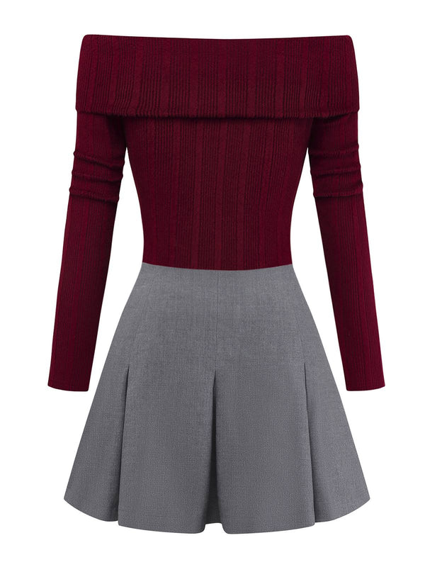 [Prévente] 2PCS hauts torsadés en maille et jupe plissée rouge et gris – Retro Stage-France