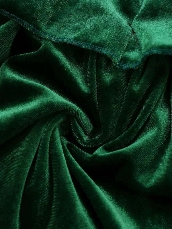 Robe à volants en velours col montant et nœud papillon vert des années – Retro Stage-France