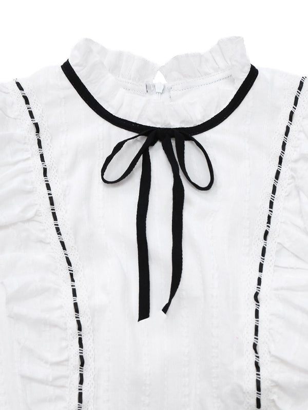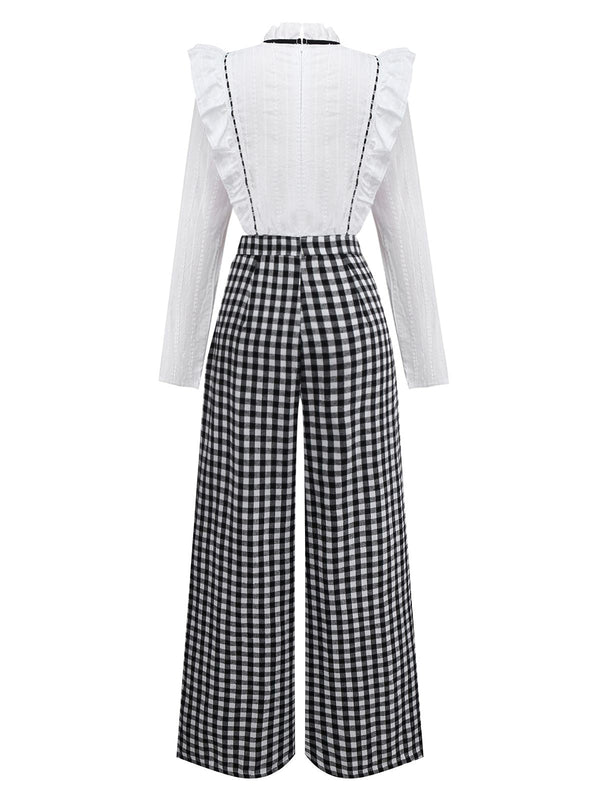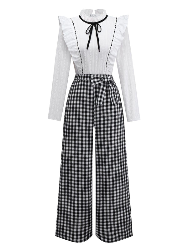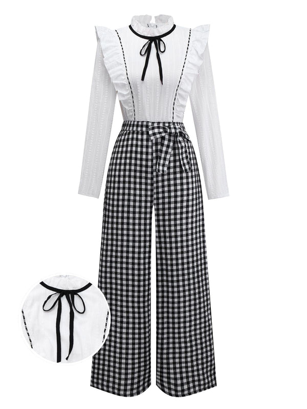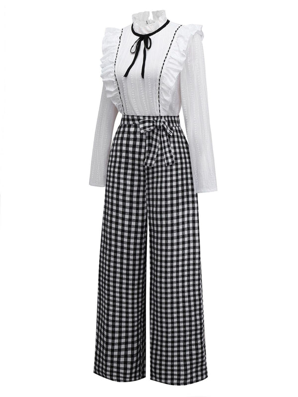 [Prévente] Combinaison à carreaux en coton col à volants et nœud des années 1930