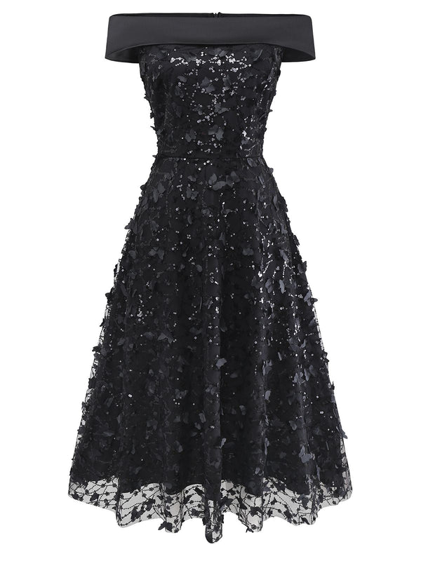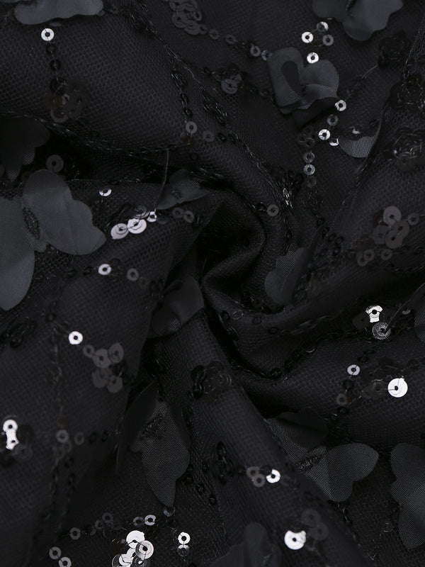 [Prévente] Robe midi noire à sequins roses en dentelle années 1970 – Retro Stage-France
