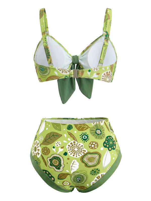 [Prévente] Ensemble bikini patchwork vert imprimé kiwi années 1940