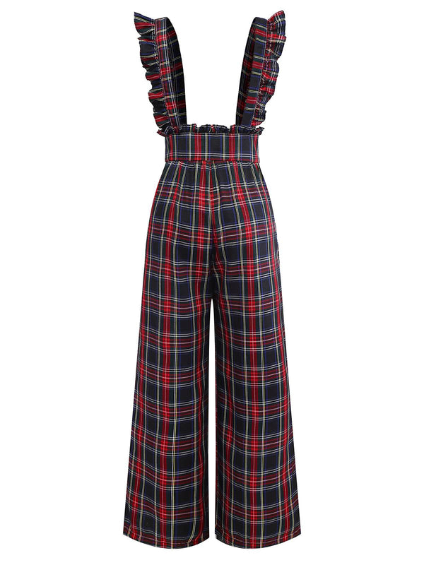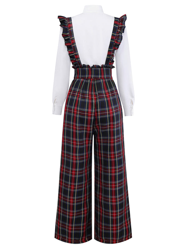 [Pré-vente] 2PCS chemisier blanc et pantalon salopette à carreaux noir des années 1940