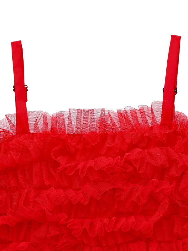[Prévente] Robe de Noël rouge à volants en tulle et nœud et ruban années 80