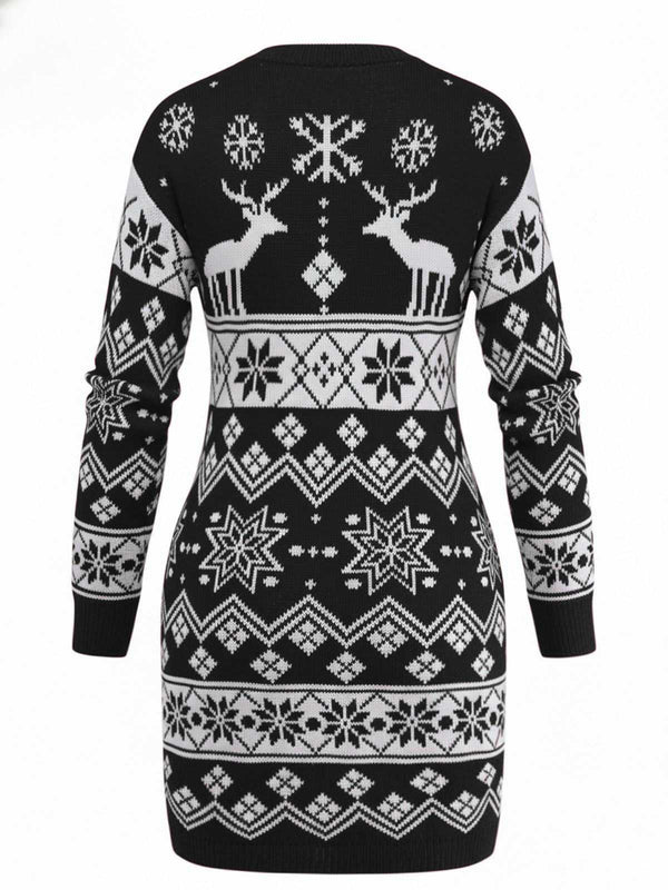 Robe en maille jacquard à rennes et de flocons de neige années 1960 – Retro Stage-France