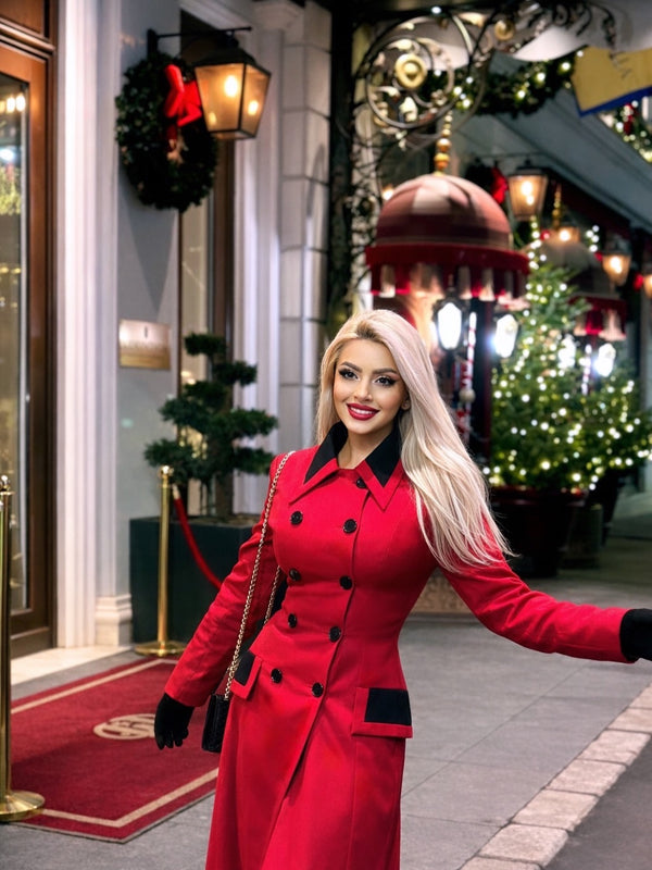 Manteau rouge à double boutonnage à revers des années 1950 – Retro Stage-France