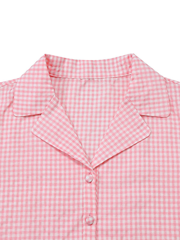 [Prévente] Ensemble pyjama rose carreaux vichy volants et rubans années 50