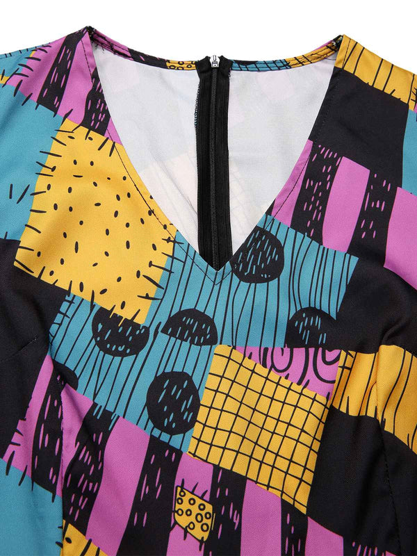 [Prévente] Combinaison multicolore Sally col en v années 1940 – Retro Stage-France