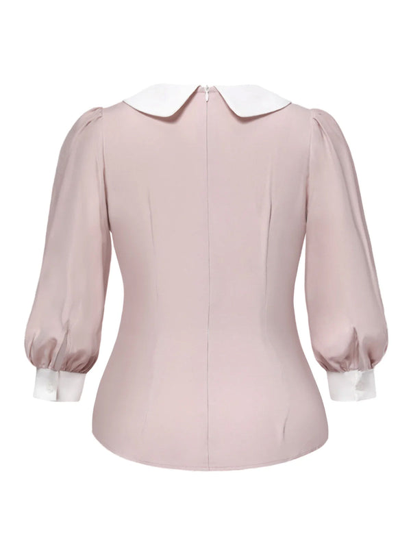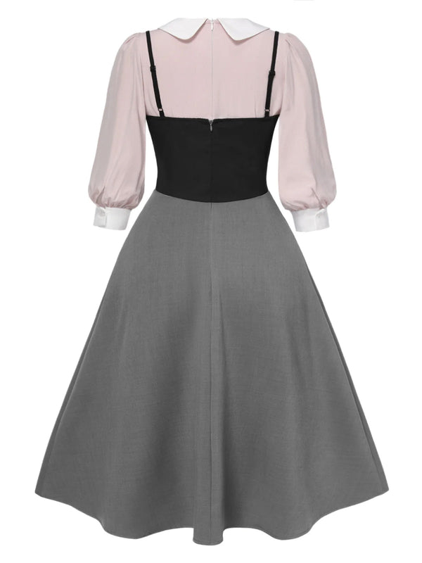 [Pré-vente] [Grande taille] 2PCS chemisier rose colorblock et robe grise des années 40