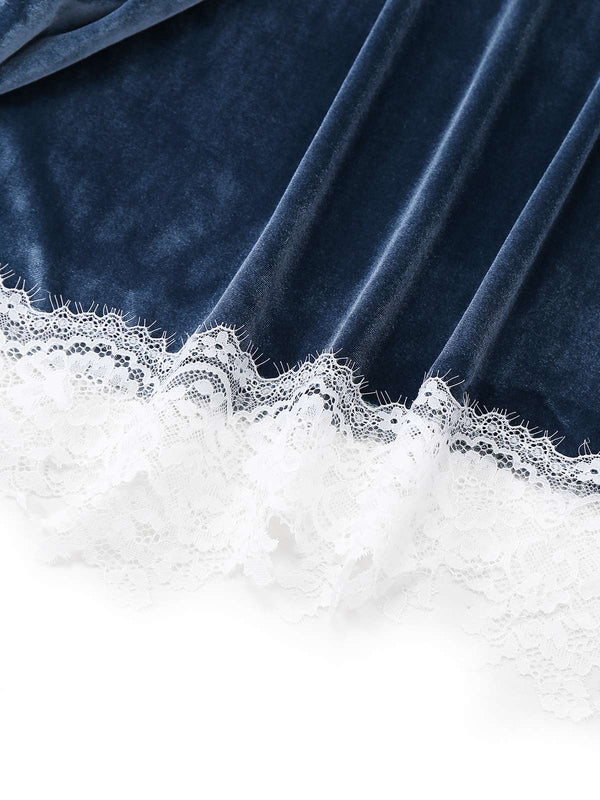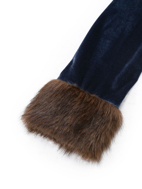 Robe en velours bleu patchwork de fausse fourrure et dentelle des anné – Retro Stage-France