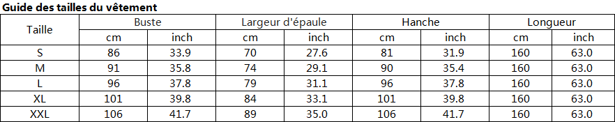 Taille: Il existe 5 tailles (S / M / L / XL / XXL) disponibles pour la liste suivante. s'il vous plaît permettre 1-2 cm diffère en raison de la mesure manuelle, merci (Toutes les mesures en cm et s'il vous plaît noter 1 cm = 0,39 pouce)