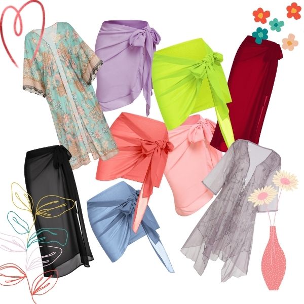 Jupe portefeuille de plage en mousseline de soie unie rétro court
