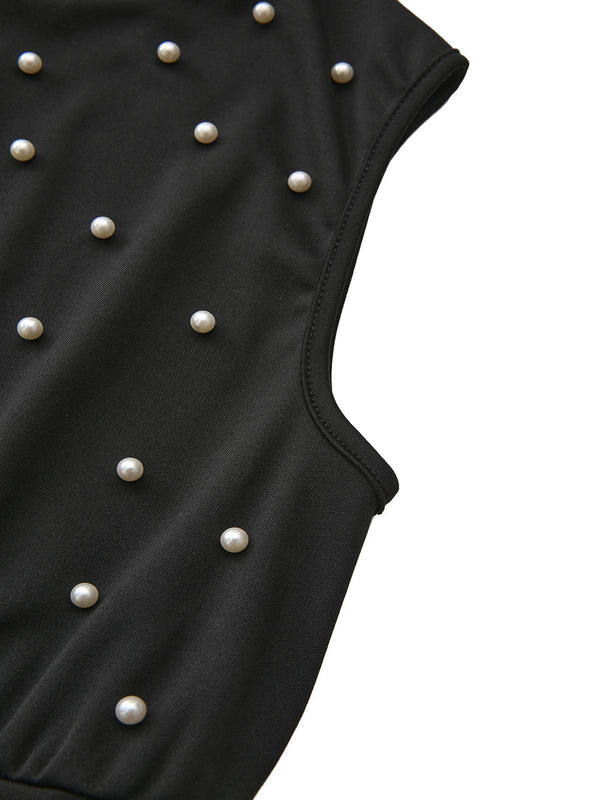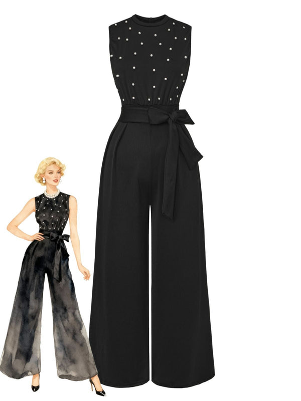 Combinaison noire à nœud et perles avec ceinture années 1950 – Retro Stage-France