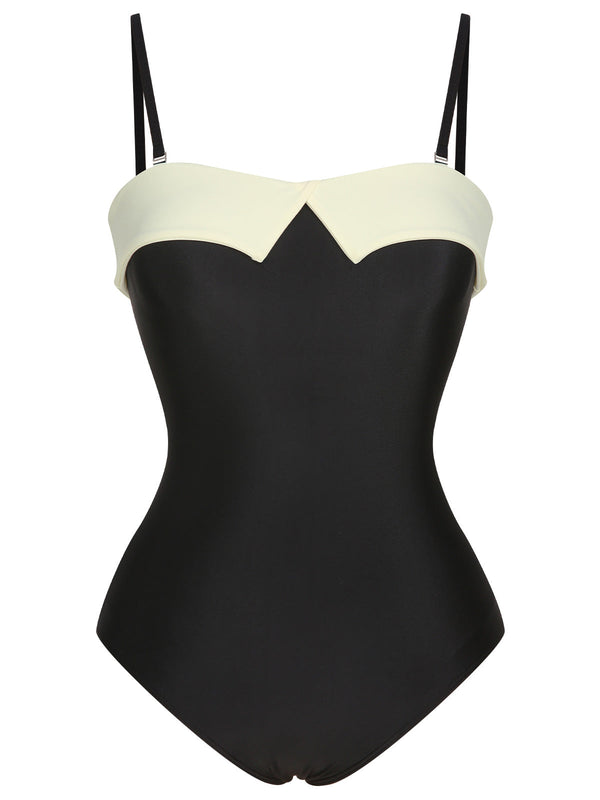 Maillot de bain bandeau uni noir et blanc des années 1950