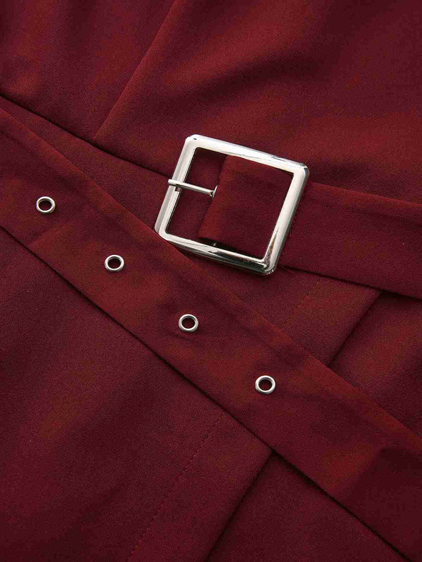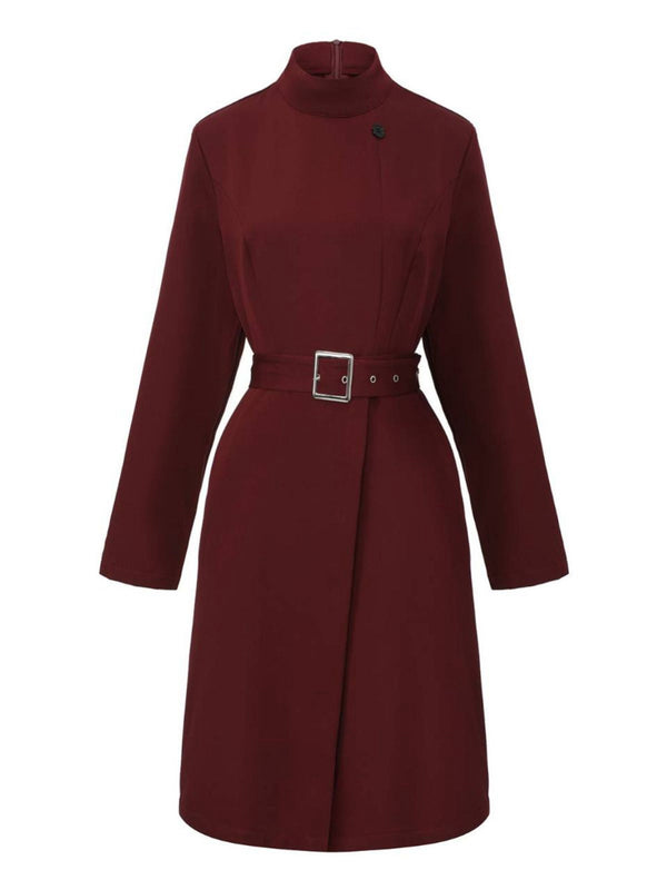 Robe unie col roulé et ceinture style avec poche années 1940 – Retro Stage-France