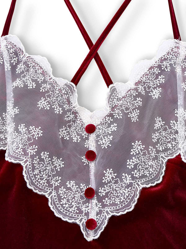 [Prévente] Nuisette rouge en velours et dentelle à fines bretelles années 1940