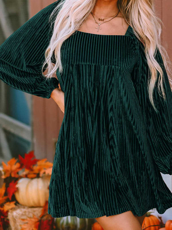 Robe babydoll en velours à col carré et manches bouffantes années 1960 – Retro Stage-France