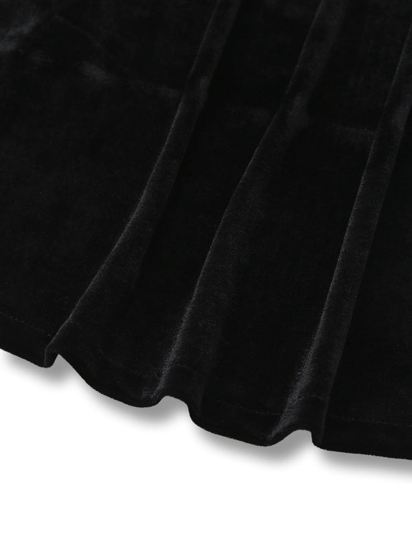 [Pré-vente] Robe en velours noir col en V et revers en dentelle des années 1940