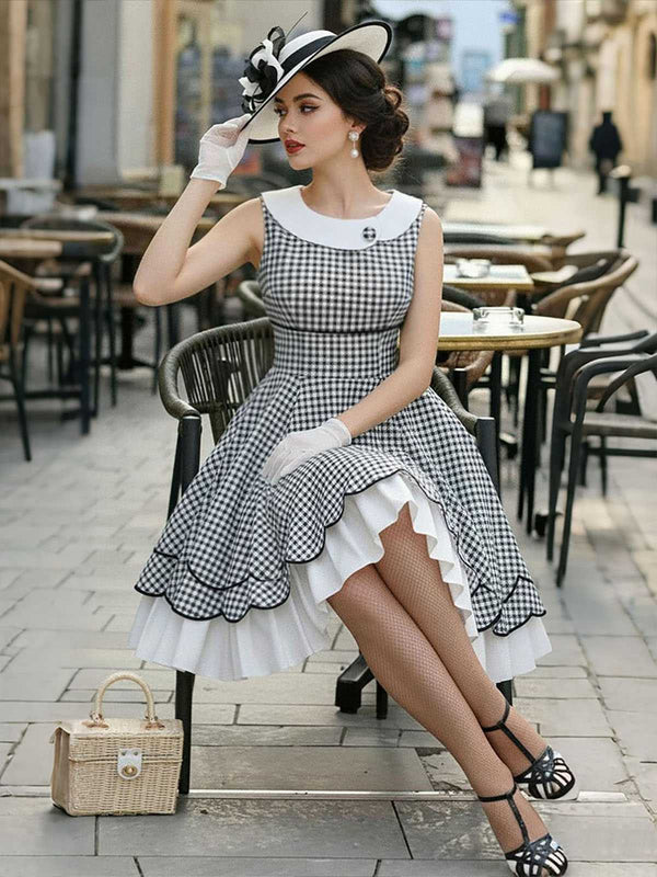 [Pré-vente] Robe à volants en vichy noir et blanc des années 1950 – Retro Stage-France