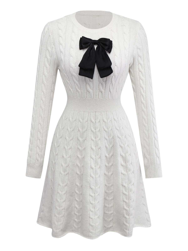 Robe pull blanche en tricot à nœud décoratif des années 1970 – Retro Stage-France