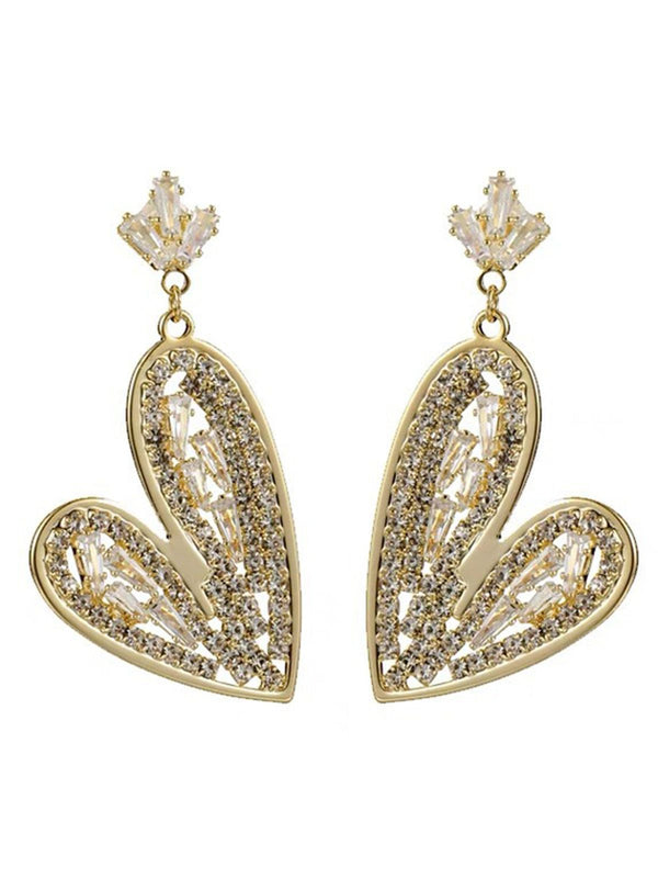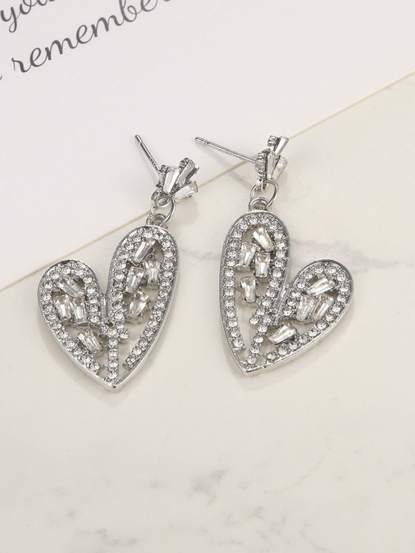 Boucles d'oreilles en forme de cœur argentées ornées de cristaux – Retro Stage-France