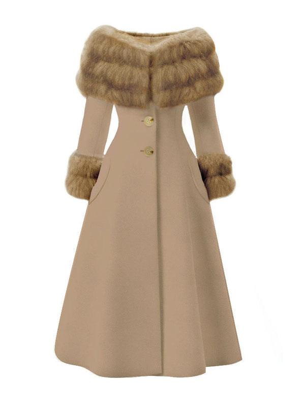 [Prévente] Manteau à col en fourrure multicouche camel années 1950 – Retro Stage-France