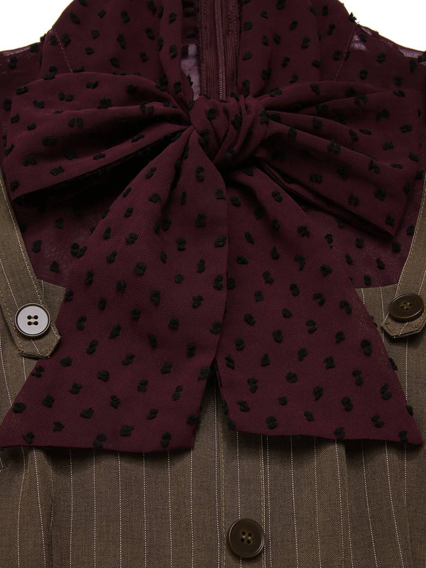 Détails : Col noué et manches bouffantes, faux deux-pièces