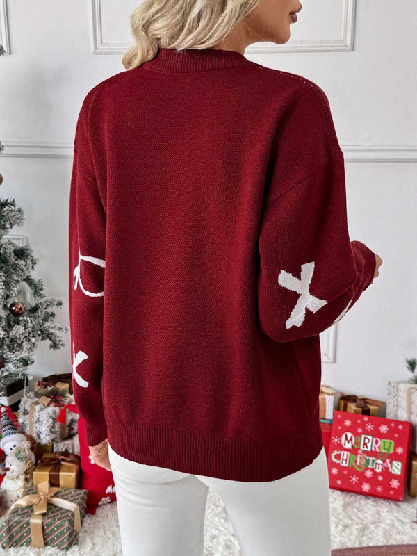 Pull rouge bordeaux motif nœud papillon années 1950 – Retro Stage-France