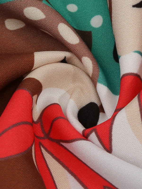 Robe Pour Noël Chic Année 50 Bleu Motifs Renne et flocon de neige – Retro Stage-France