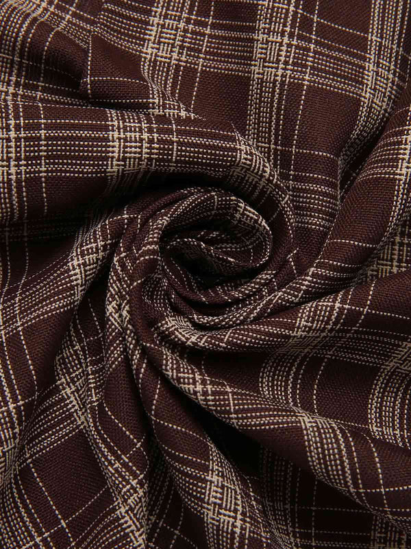 [Pré-vente] Jupe plissée à carreaux en patchwork marron avec ceinture – Retro Stage-France