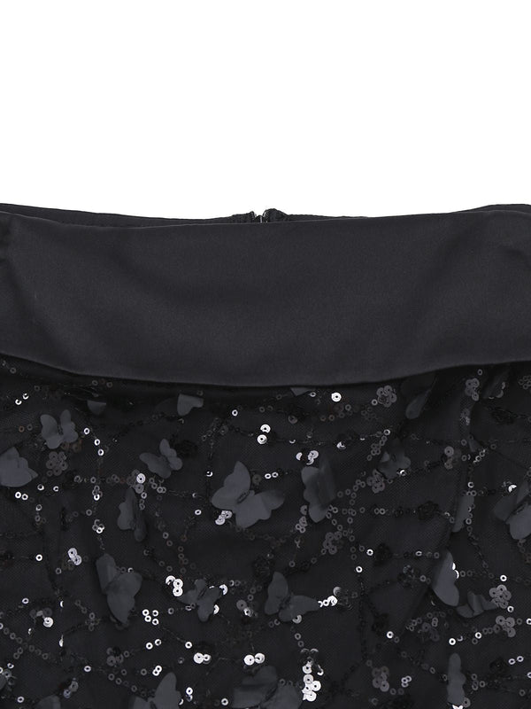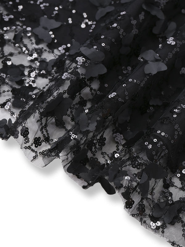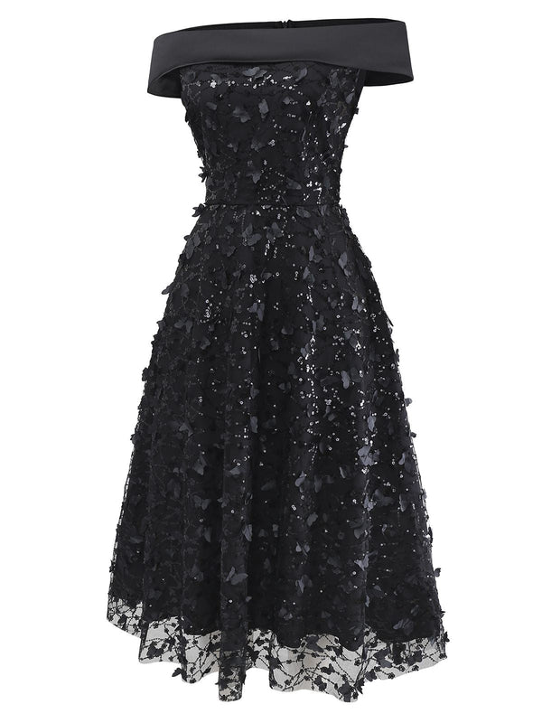 [Prévente] Robe midi noire à sequins roses en dentelle années 1970 – Retro Stage-France