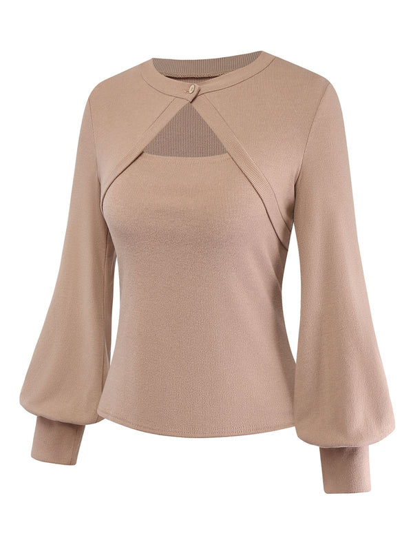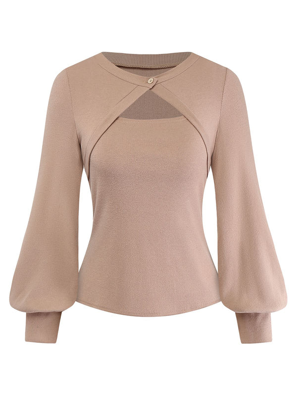 [Prévente] Pull beige à manches longues superposées et découpes style années 60
