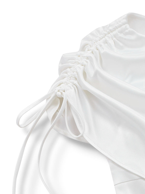 [Prévente] Robe blanche en satin froncée à lacets col bateau années 1930