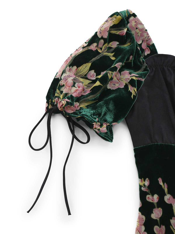 [Prévente] Robe en velours fleuri à col carré et volants des années 19 – Retro Stage-France