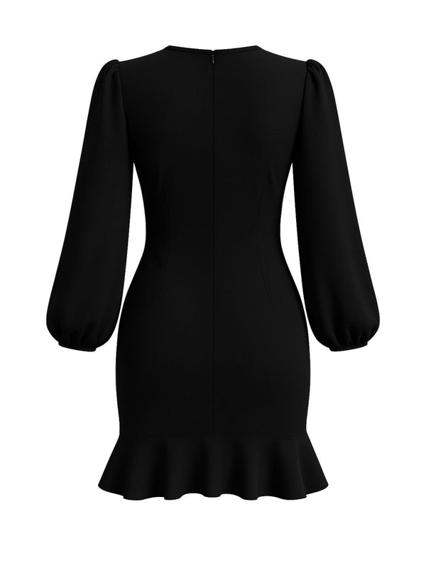 [Prévente] Robe noire unie à manches bouffantes et volants des années 1960