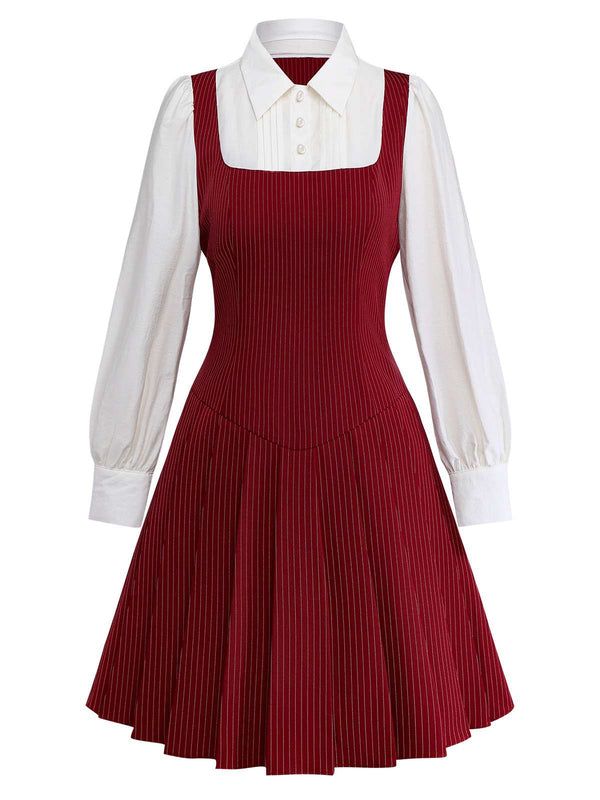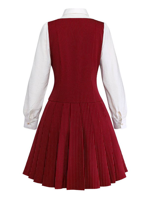 [Prévente] Robe plissée rouge à rayures verticales style académie années 60