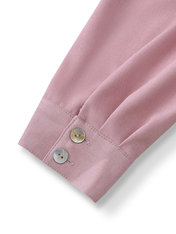 [Prévente] Robe rose poudré en coton à volants col en forme de goutte contrastée années 40