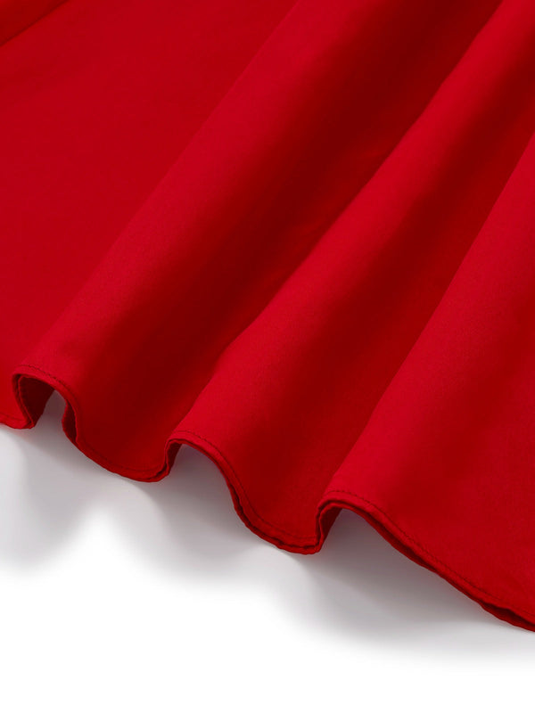 [Prévente] Robe trapèze en satin manches nœud papillon rouge des années 1950