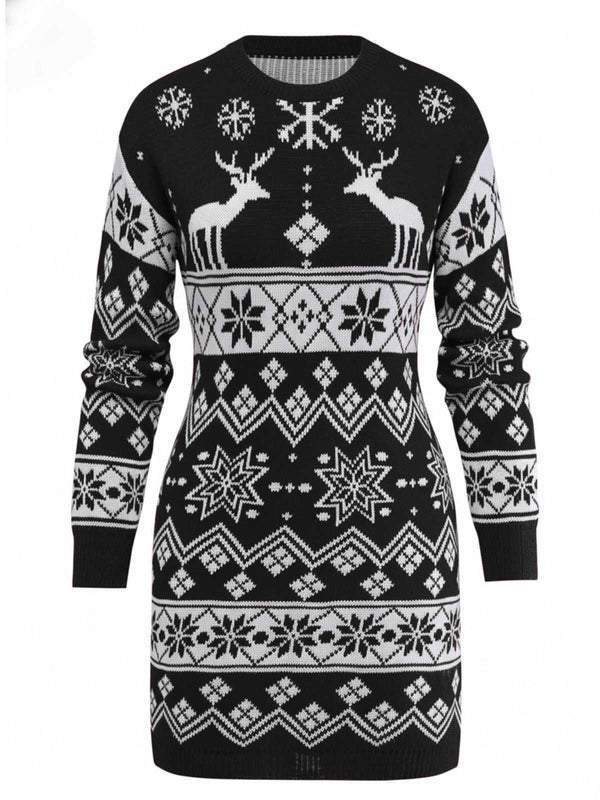 Robe en maille jacquard à rennes et de flocons de neige années 1960 – Retro Stage-France